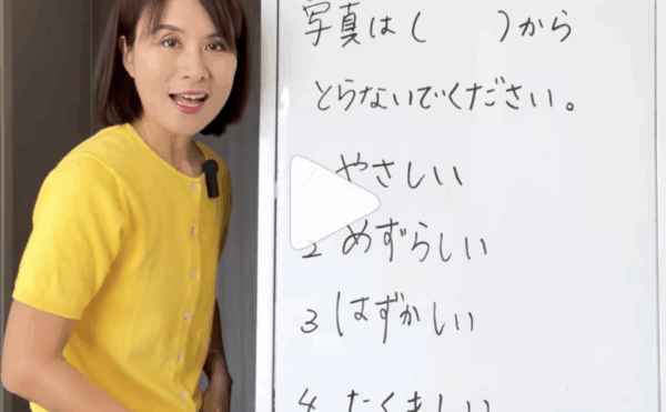 NEW 24/01/2026Quick Japanese LessonChika Sensei [JLPT N4] “Because I’m shy”: [やさしい・めずらしい・はずかしい・たくましい] + から? こんにちは、ちか先生です。 Konnichiwa, it’s Chika Sensei. Today, I’m sharing a practice question for JL […]