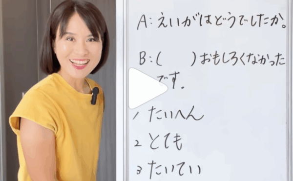 21/10/2025Quick Japanese LessonChika Sensei [JLPT N5]Not very interesting:[たいへん・とても・たいてい・あまり]+おもしろくなかったです? こんにちは、ちか先生です。 Konnichiwa, it’s Chika Sensei. Today, I’m sharing a practice question for JL […]