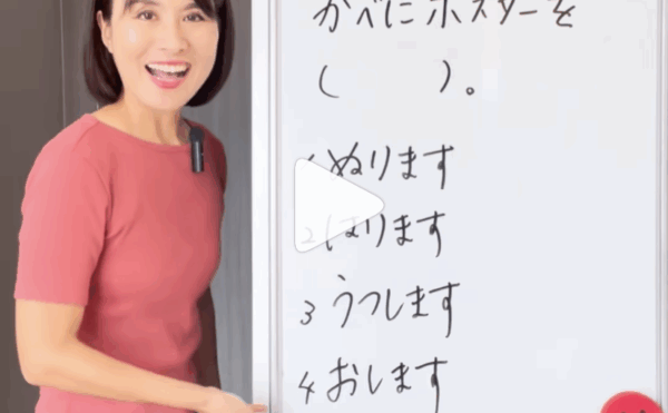 21/10/2025Quick Japanese LessonChika Sensei [JLPT N4]Putting up a poster: ポスターを [ぬります・はります・うつします・おします]? こんにちは、ちか先生です。 Konnichiwa, it’s Chika Sensei. Today, I’m sharing a practice question for JL […]