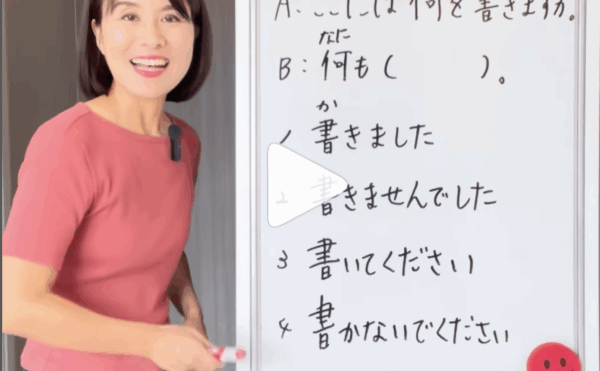 23/10/2025Quick Japanese LessonChika Sensei [JLPT N5] Please don’t write anything: 何も+[書きました・書きませんでした・書いてください・書かないでください]? こんにちは、ちか先生です。 Konnichiwa, it’s Chika Sensei. Today, I’m sharing a practice question for JL […]