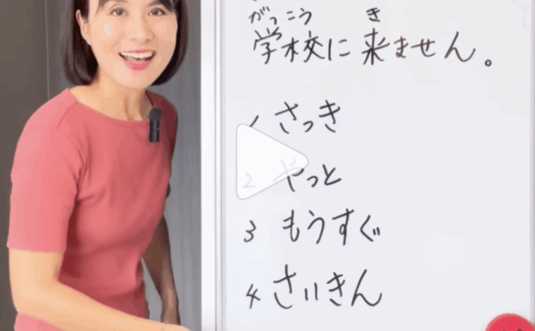 23/10/2025Quick Japanese LessonChika Sensei [JLPT N4] Recently, he hasn’t come: [さっき・やっと・もうすぐ・さいきん] + 来ません? こんにちは、ちか先生です。 Konnichiwa, it’s Chika Sensei. Today, I’m sharing a practice question for JL […]