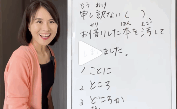 NEW 04/12/2025Quick Japanese LessonChika Sensei [JLPT N2]”To my great regret”: 申し訳ない+[ことに・ところ・どころか・末に]? こんにちは、ちか先生です。 Konnichiwa, it’s Chika Sensei. Today, I’m sharing a practice question for JL […]