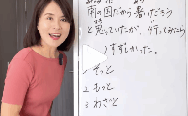NEW 19/12/2025Quick Japanese LessonChika Sensei [JLPT N3] fairly cool: [そっと・もっと・わざと・わりと] すずしかった? こんにちは、ちか先生です。 Konnichiwa, it’s Chika Sensei. Today, I’m sharing a practice question for JL […]