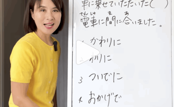 NEW 13/01/2026Quick Japanese LessonChika Sensei [JLPT N3] Thanks to your help: [かわりに・わりに・ついでに・おかげで]? こんにちは、ちか先生です。 Konnichiwa, it’s Chika Sensei. Today, I’m sharing a practice question for JL […]