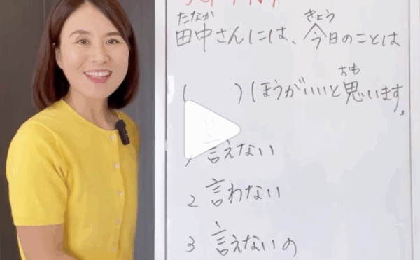 NEW 18/02/2026Quick Japanese LessonChika Sensei [JLPT N4] Better not to say it: 言えない・言わない・言えないの・言わないの+ほうがいい? こんにちは、ちか先生です。 Konnichiwa, it’s Chika Sensei. Today, I’m sharing a practice question for JL […]